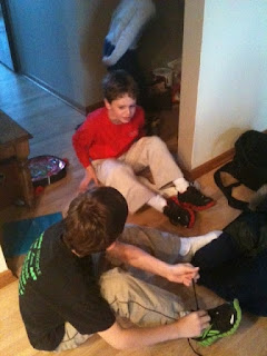 shirt on, one got hit in the head with a backpack, and one fought with me to get out the door because he had better things to do...like play with his toys.